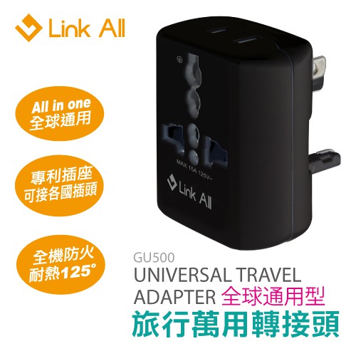 Link All GU500 旅遊萬用轉接頭 全球通用型 黑色 白色 綠風潮