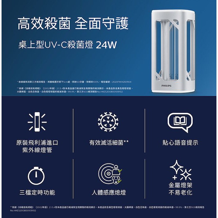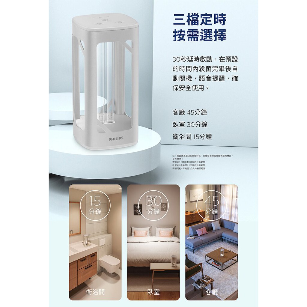 PHILIPS 飛利浦 UV-C 感應語音 殺菌燈 定時關機 PU002 銀色(福利品出清) 綠風潮