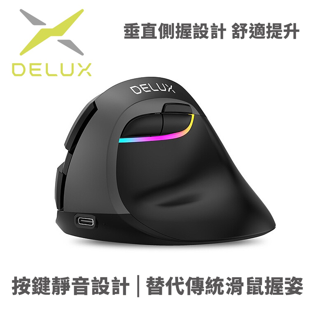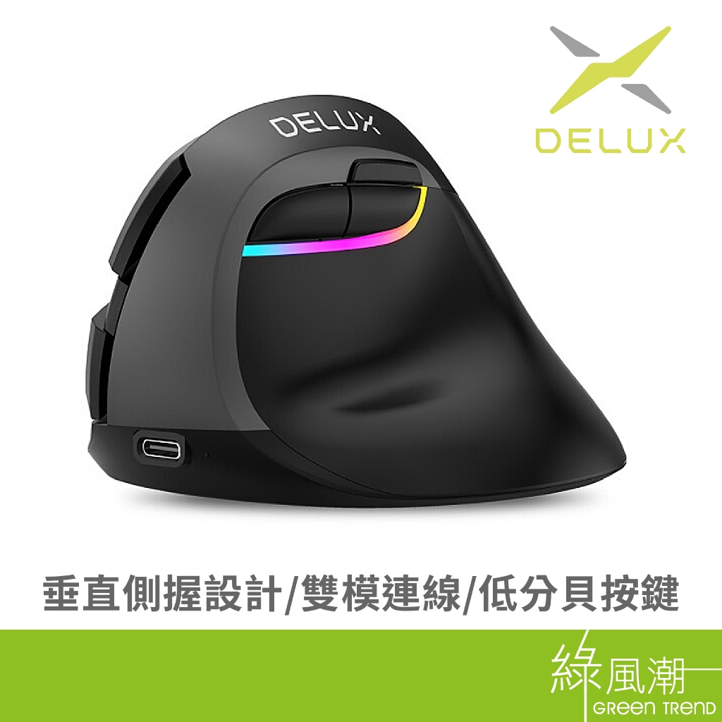 DeLUX 多彩 M618mini 滑鼠 雙模垂直靜音 光學 黑 綠風潮