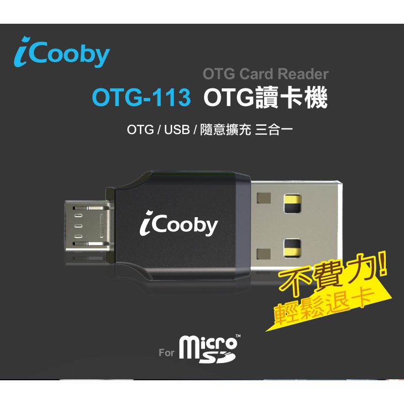 iCooby OTG-113 OTG 記憶卡讀卡機 1槽 USB2.0 SD卡 黑色 綠風潮