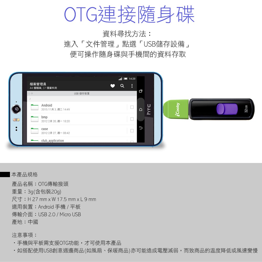 iCooby OTG-227 Micro to USB 公對母 OTG傳輸接頭 熱插拔 綠色 綠風潮