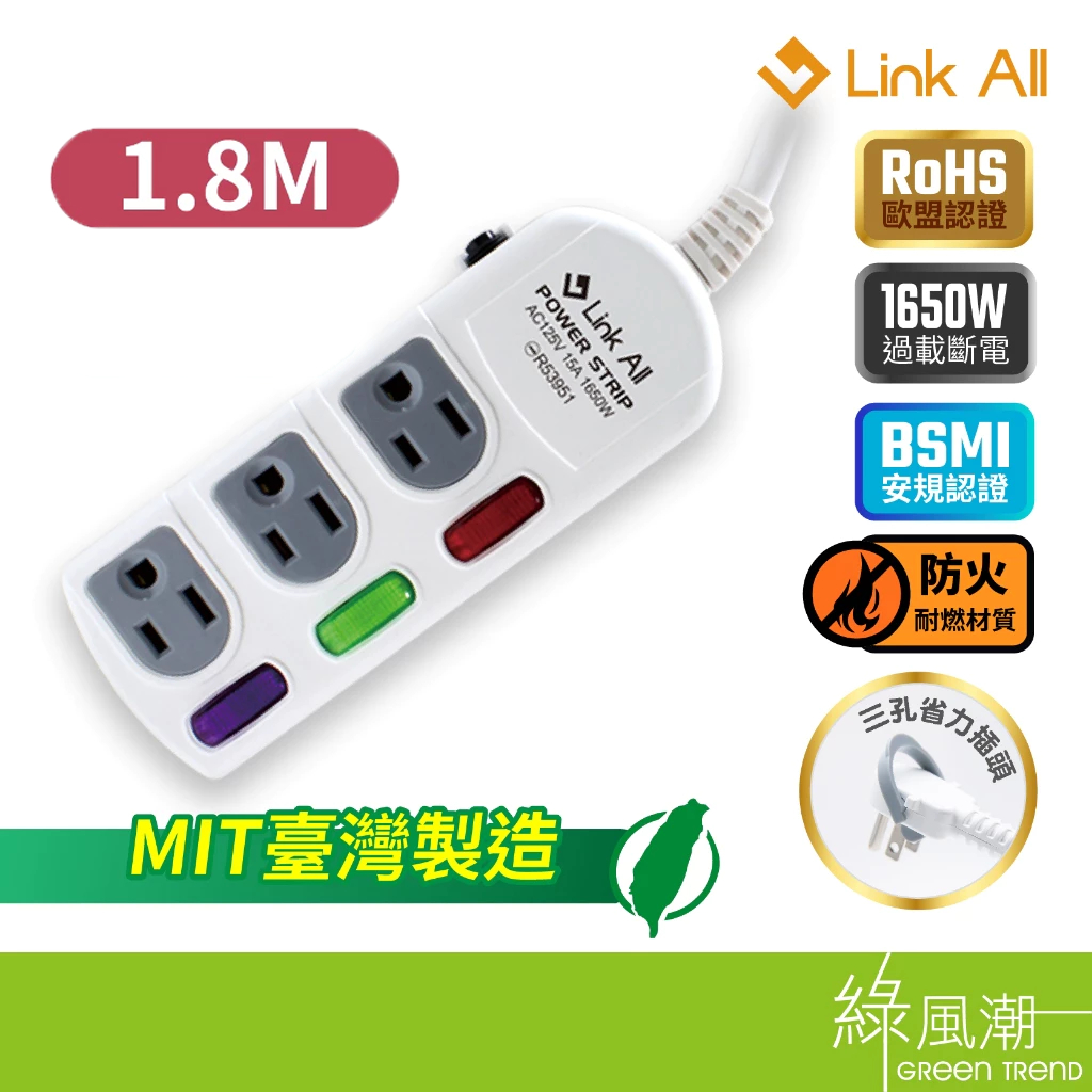 【台灣製造】Link All 過載保護 新安規認證 防火延長線 1.8M 2.7M 4.5M USB 充電 延長線 插座