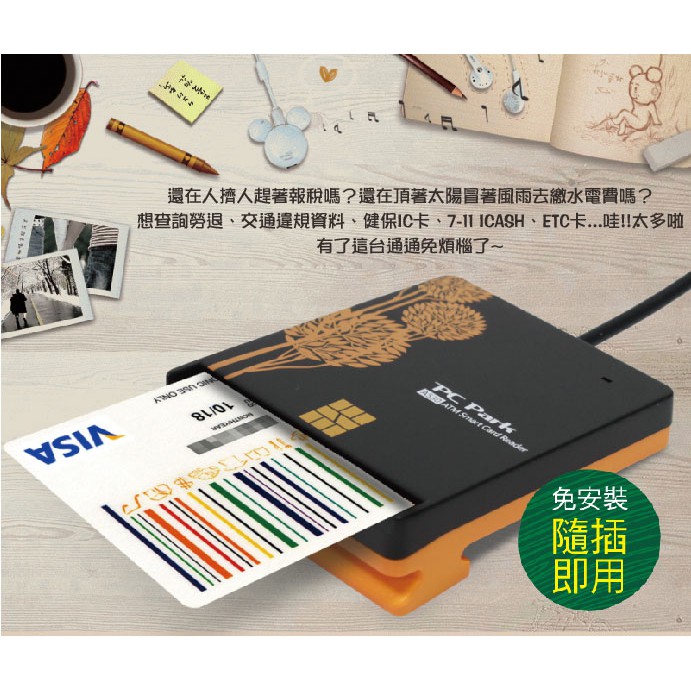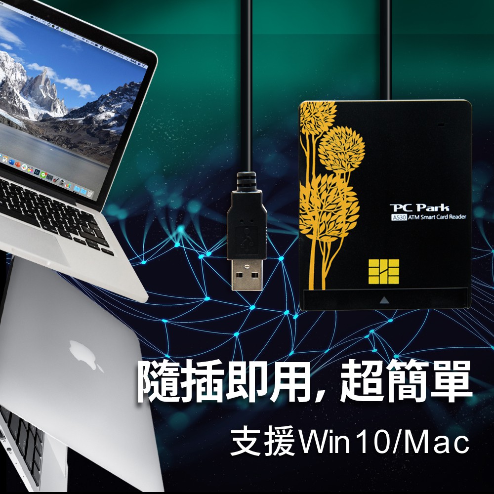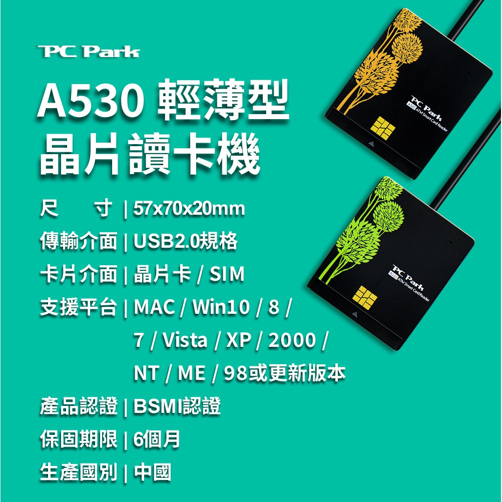 PC Park A530 USB2.0 晶片讀卡機 Windows/MacOS 免驅動 隨插即用 報稅 繳費 綠風潮