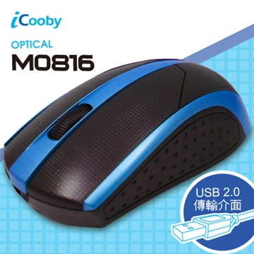 iCooby M0816BL 光學滑鼠 3鍵 含滾輪 1200dpi USB 有線滑鼠 黑色 黑紅色 黑藍色 綠風潮