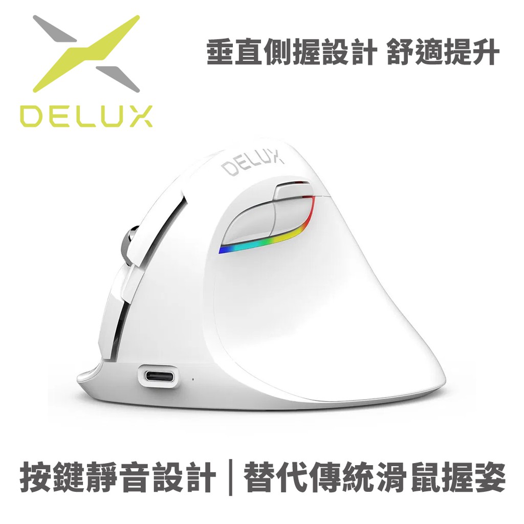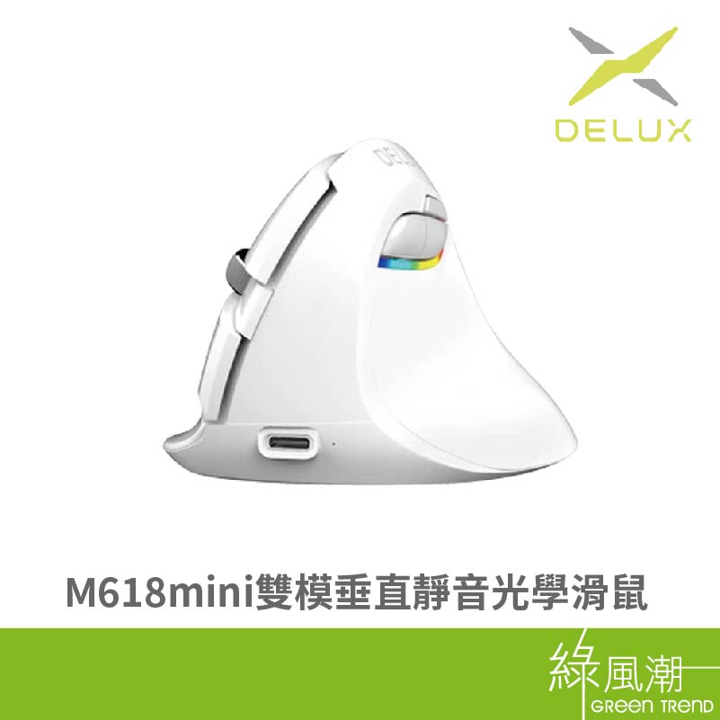 DeLUX 多彩 M618mini 無線 雙模垂直靜音光學滑鼠 白 綠風潮