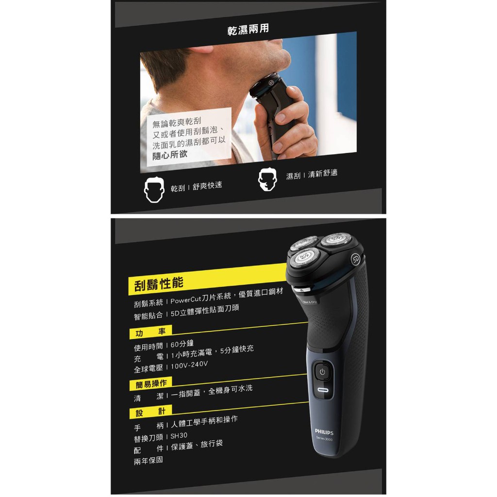 PHILIPS 飛利浦 S3231/52 三刀頭 快充 水洗 電鬍刀 刮鬍刀 綠風潮
