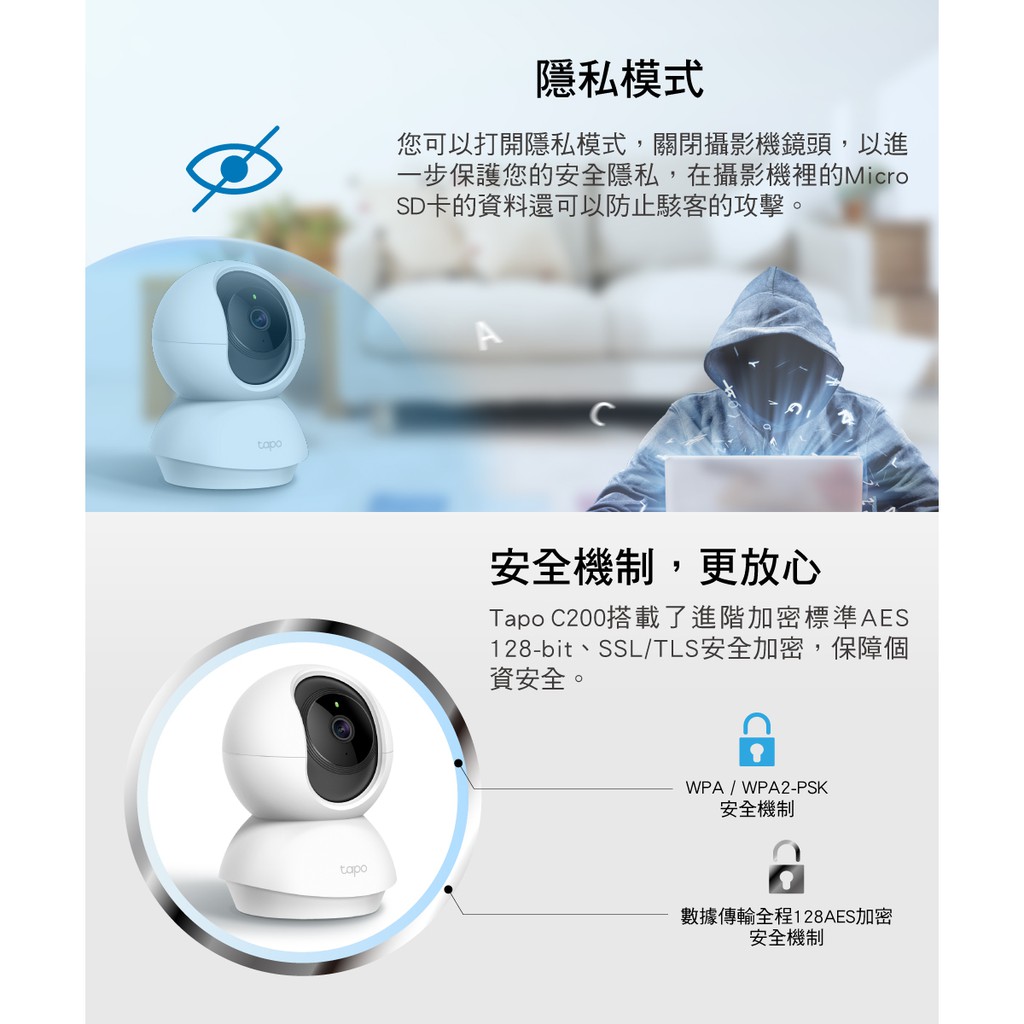 TP-LINK Tapo C200 旋轉式家庭安全防護 無線WIFI網路攝影機 高畫質影片 夜視 雙向語音