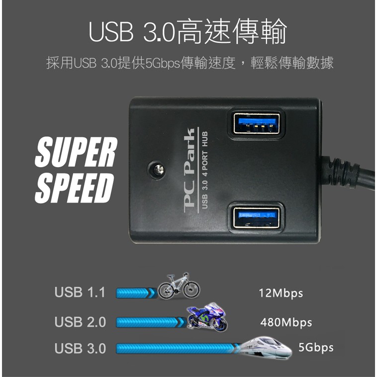 PC Park U3H342 USB HUB USB3.0集線器 4埠 4孔 黑色 綠風潮