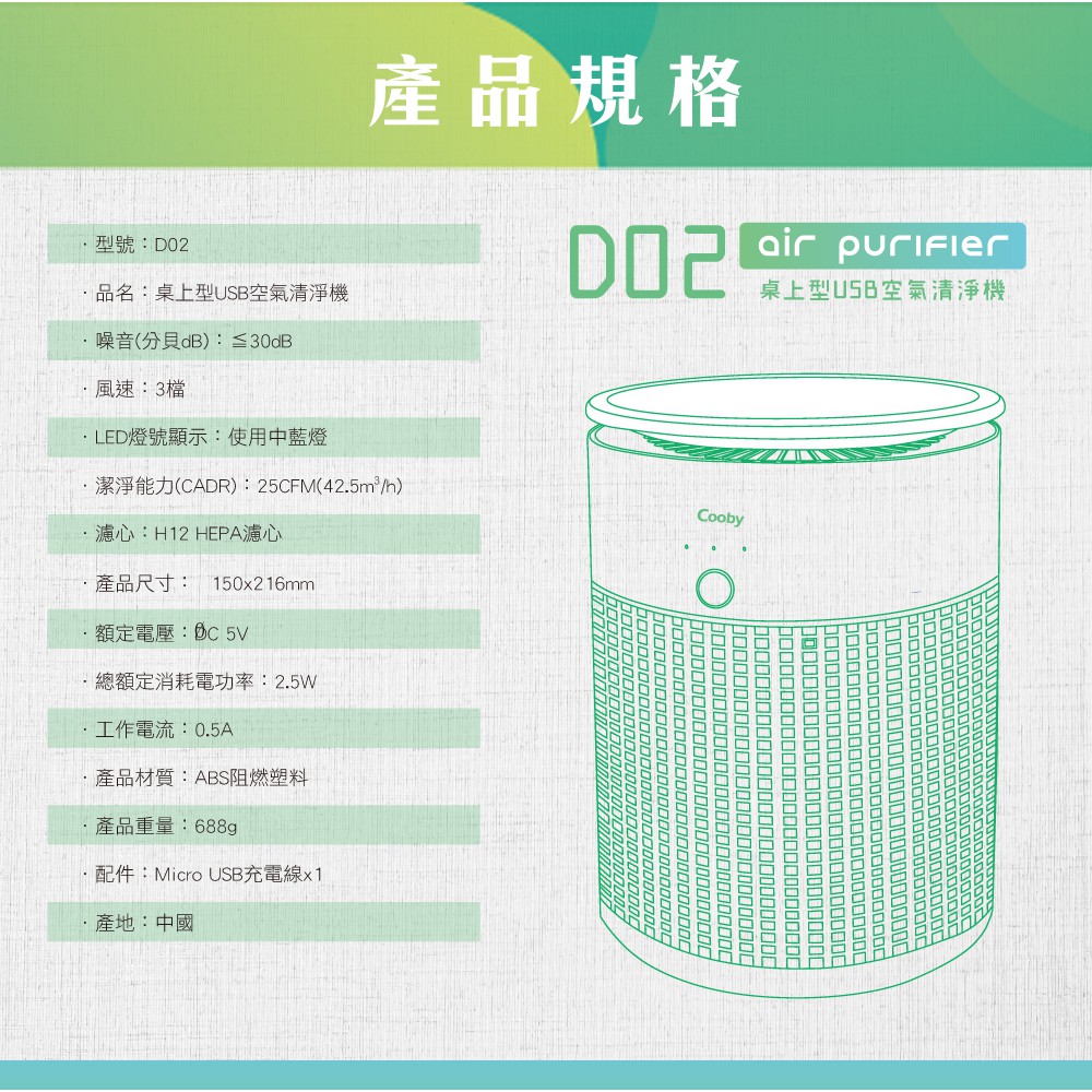 iCooby D02 桌上型USB空氣清淨機 內附濾心 3-5坪 綠風潮