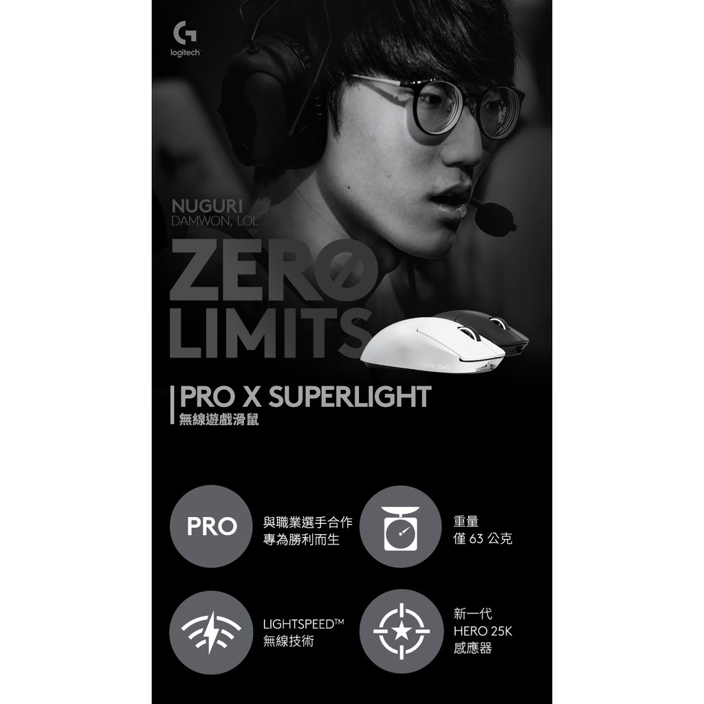 Logitech 羅技 PRO X無線輕量化電競滑鼠 黑 綠風潮