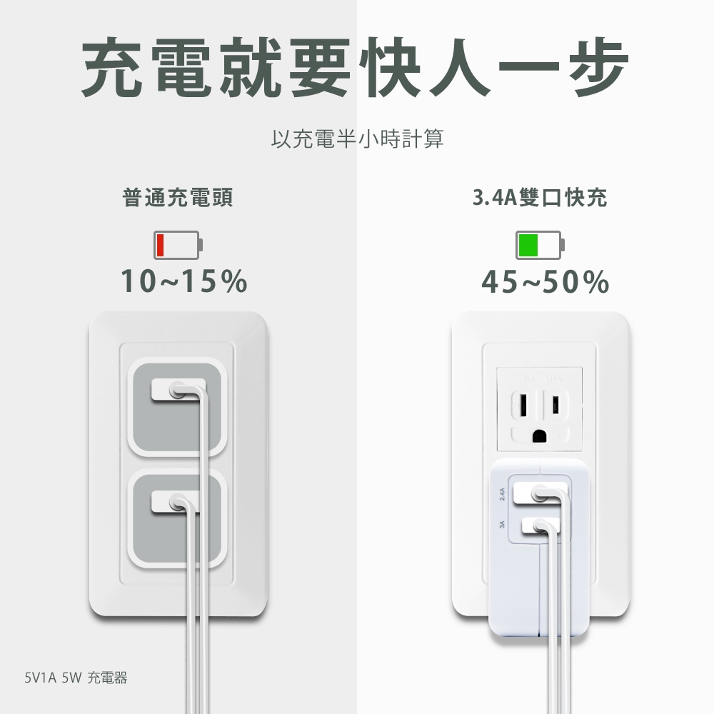e-power Type-C +USB 雙孔快充頭 TC-E340P 綠風潮