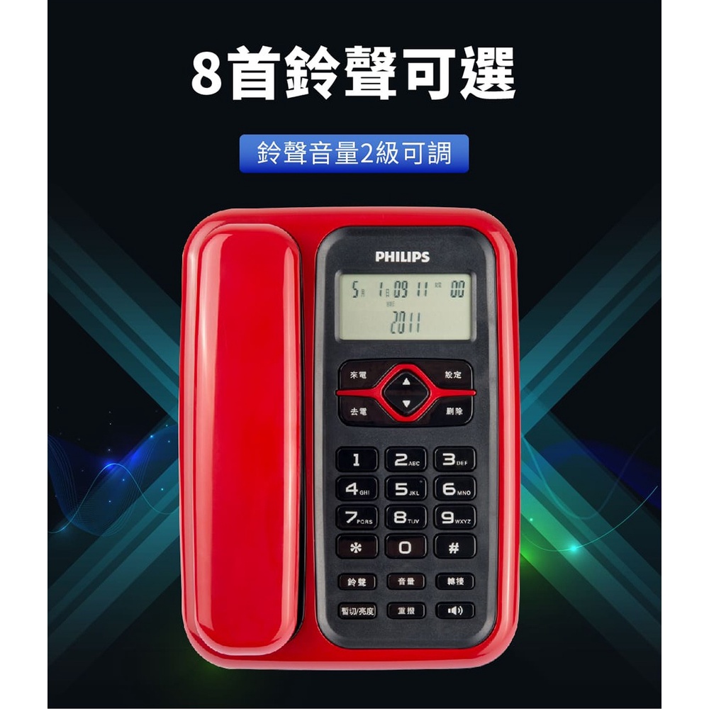 PHILIPS 飛利浦 CORD020R 96 來電顯示 有線電話 紅 黑 綠風潮