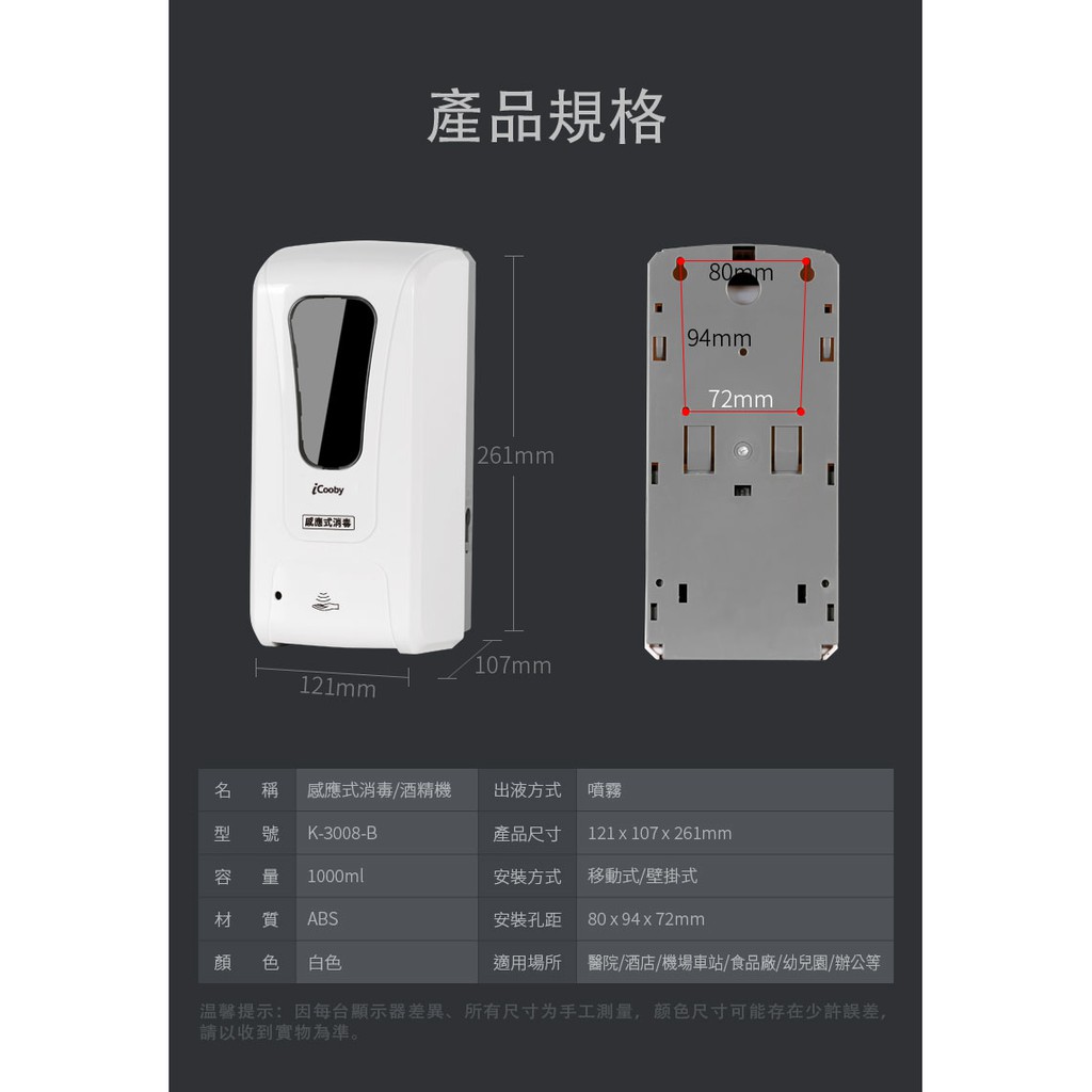 iCooby K3000 感應式噴霧機 1000ml 站立型 伸縮款 感應霧化 綠風潮