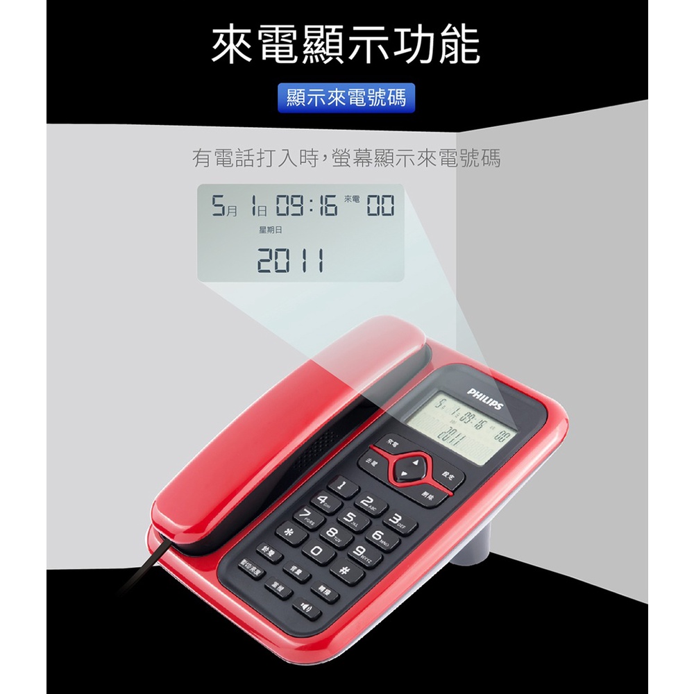 PHILIPS 飛利浦 CORD020B/96 來電顯示 有線電話 大按鍵 黑 紅 綠風潮