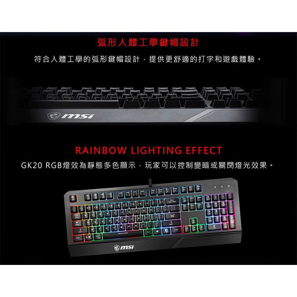 MSI 微星 Vigor GK20 TC 電競鍵盤 有線 薄膜式 綠風潮