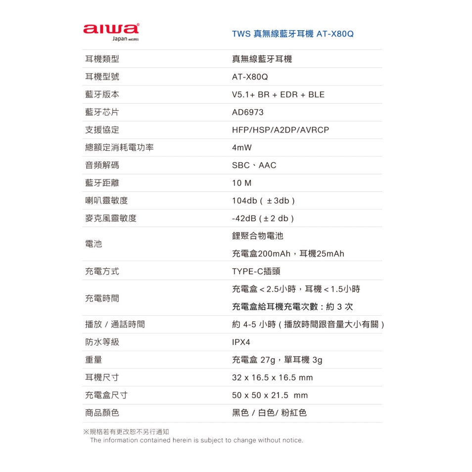 AIWA 日本愛華 AT-X80Q 真無線耳機 黑 綠風潮