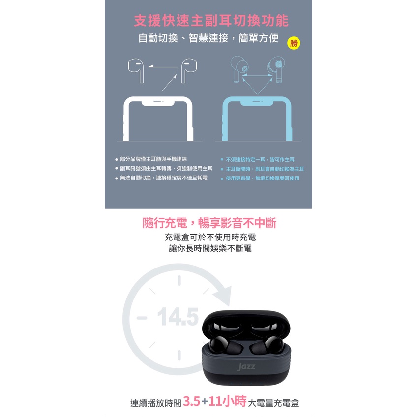 INTOPIC JAZZ-TWE21-BL 真無線 藍芽 耳麥 黑色 無線 綠風潮