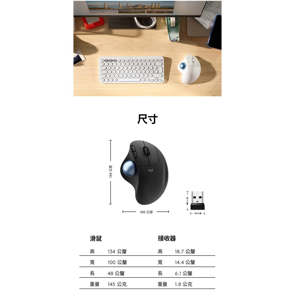 Logitech 羅技 Ergo M575 無線軌跡球 2.4G 藍牙 黑色 綠風潮