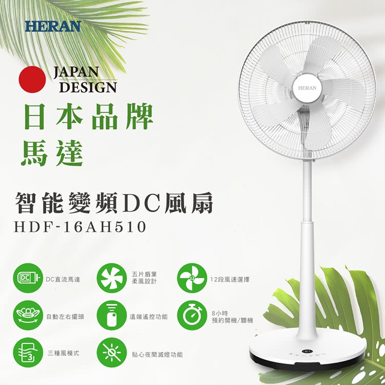 HERAN 禾聯 HDF-16AH510 16吋 DC變頻立扇 5片式扇葉 可調升降 綠風 潮