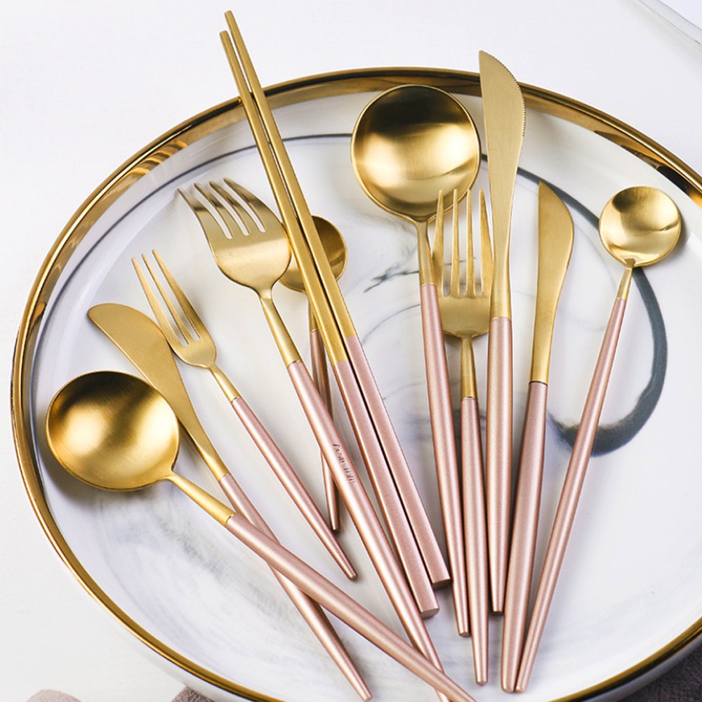 hoi!葡萄牙風 304不鏽鋼 粉金餐叉