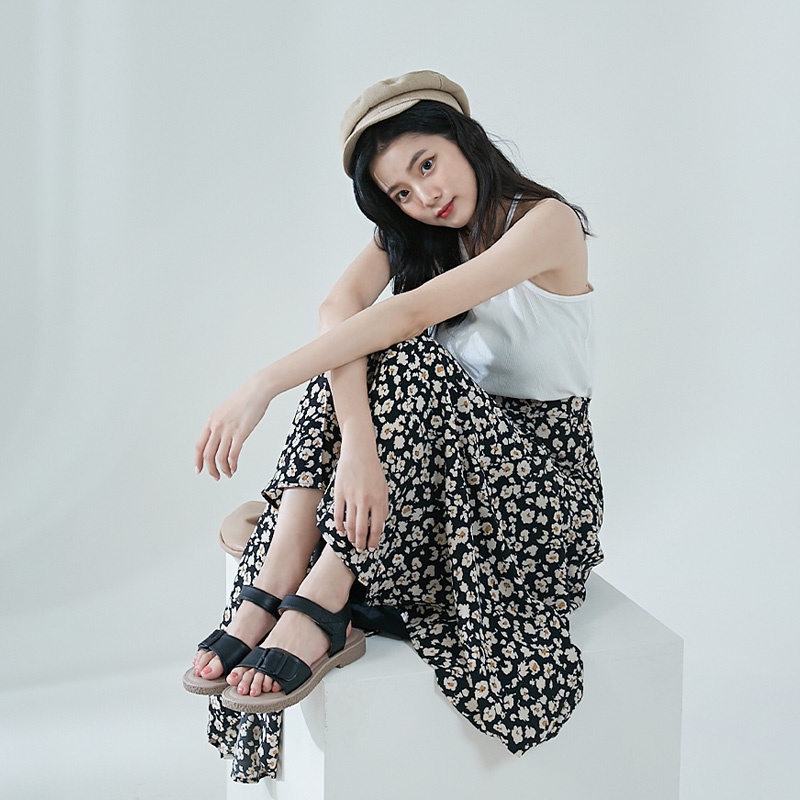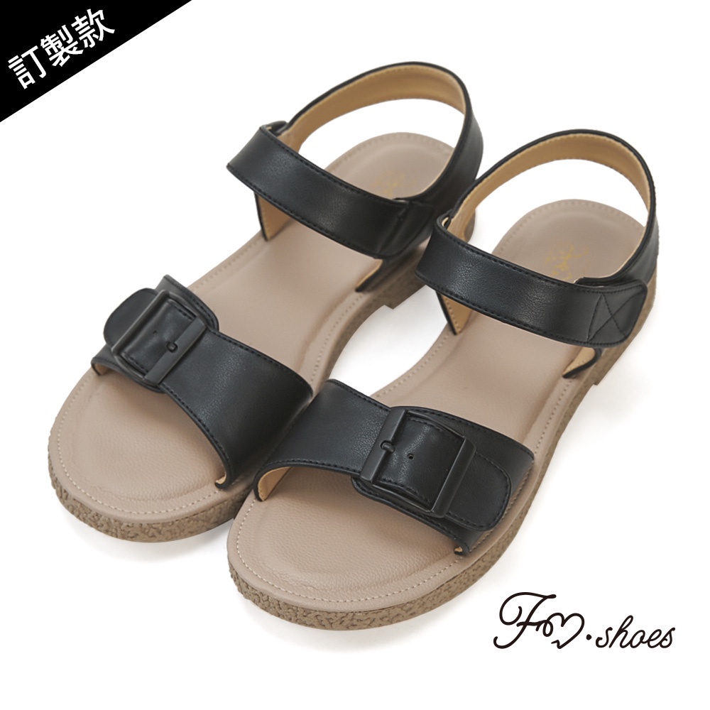 FM SHOES 涼感方釦按摩涼鞋 黑