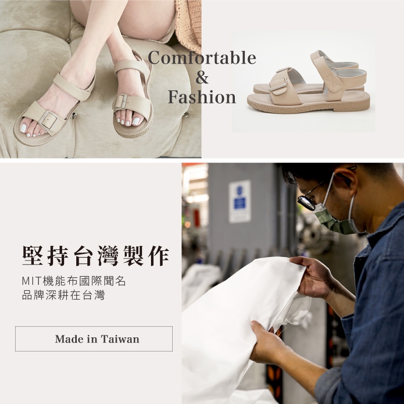 FM SHOES 涼感方釦按摩涼鞋 粉
