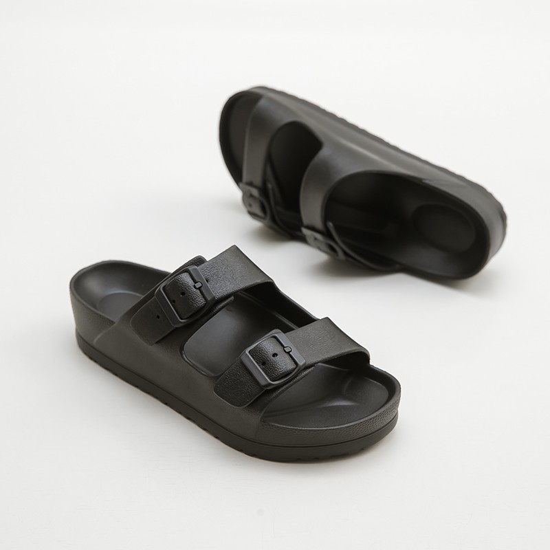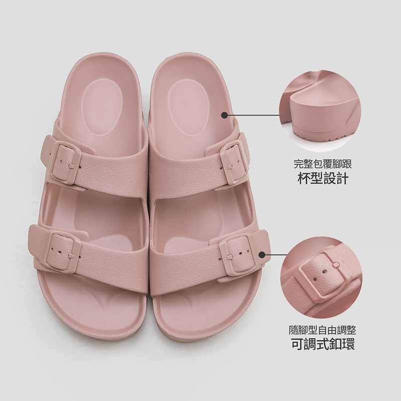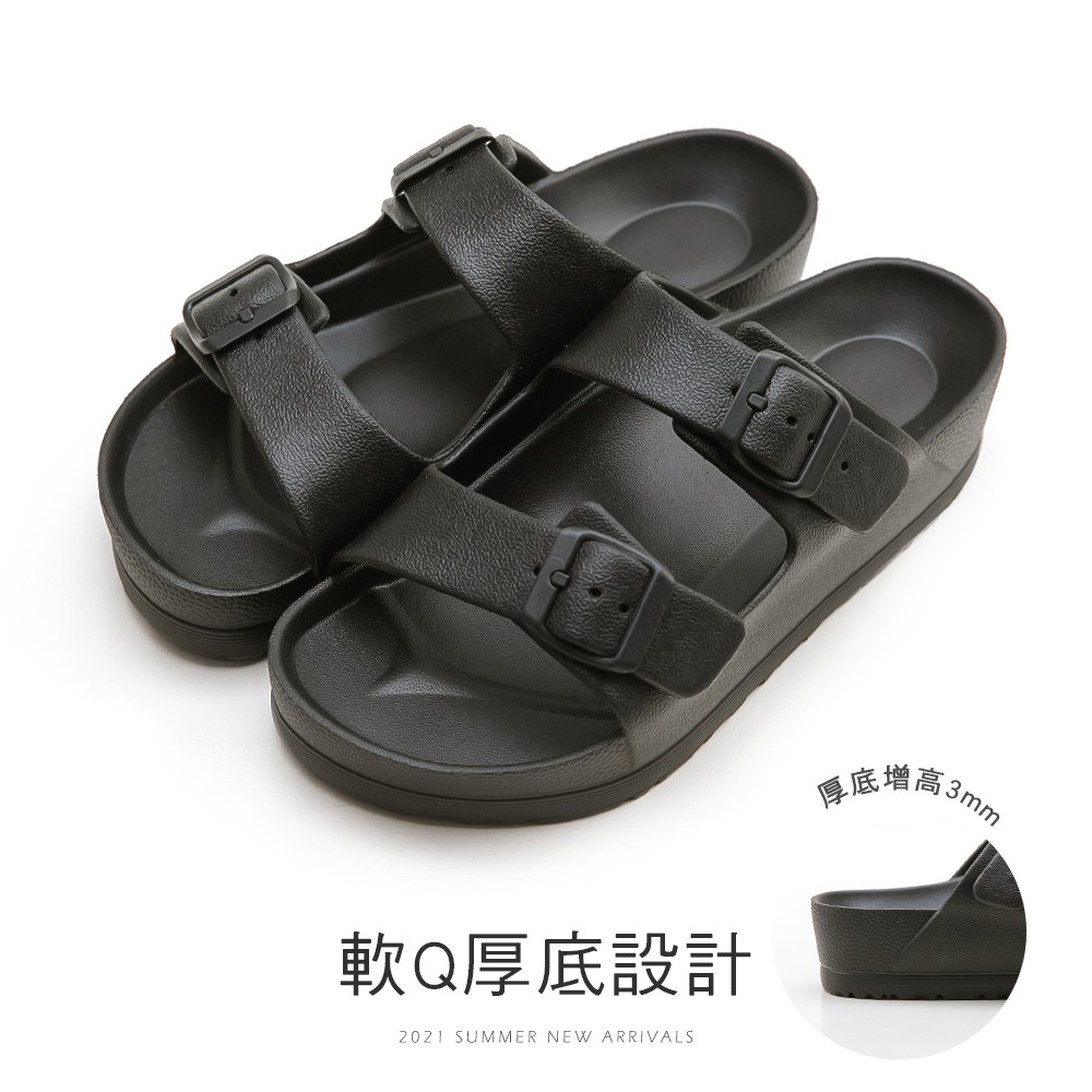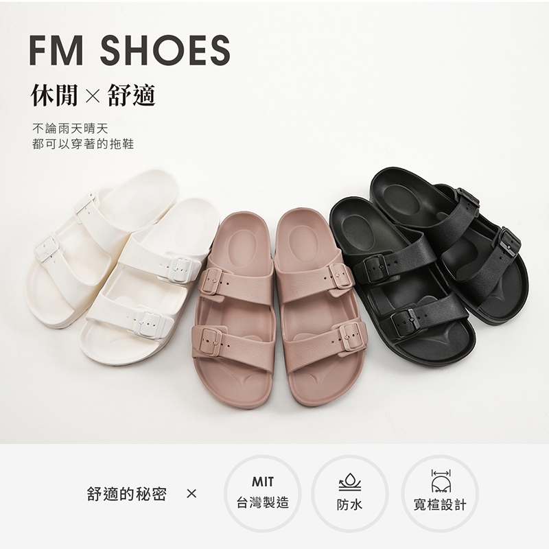 FM SHOES MIT雙釦厚底休閒拖鞋 涼鞋 防水 拖鞋 防滑拖 海灘鞋 室內拖鞋 增高 黑