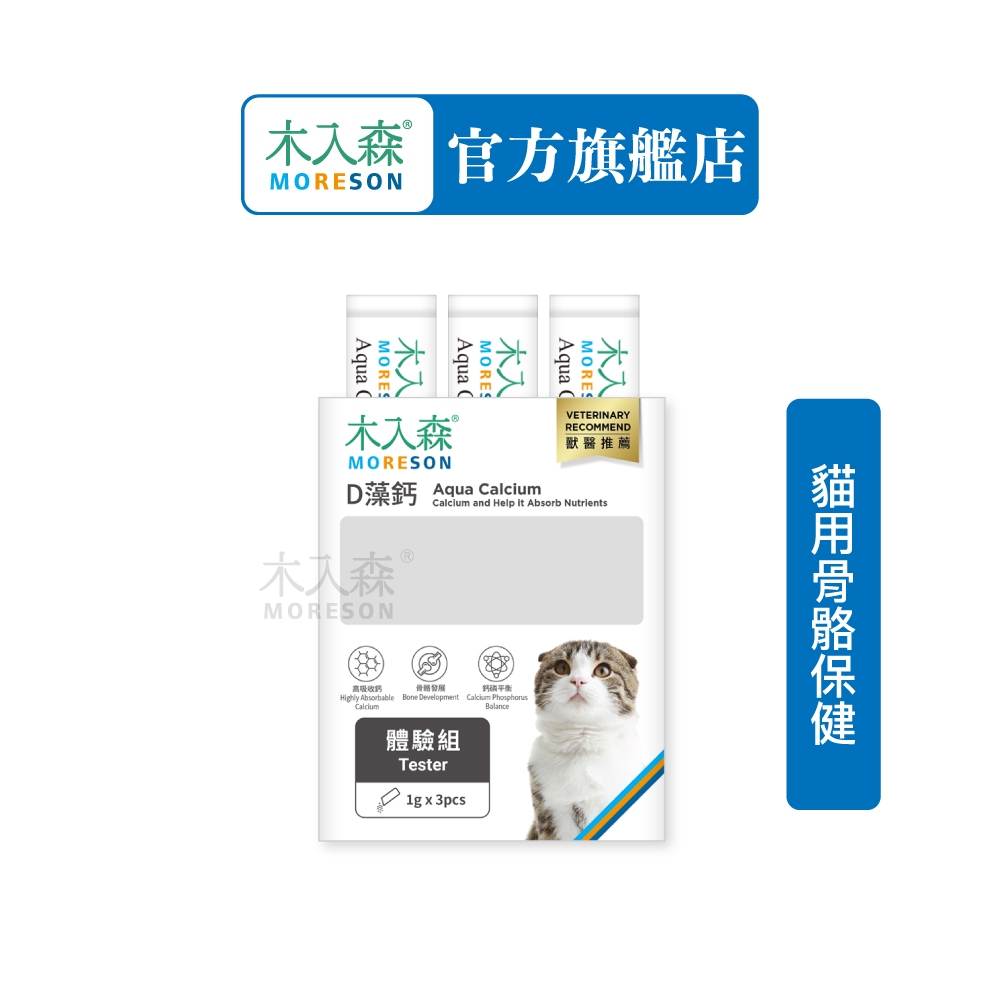 【木入森】貓咪D藻鈣 (體驗組1gx3包)|貓咪補鈣保健食品|超高吸收率 海藻鈣|老貓照護 貓鈣粉