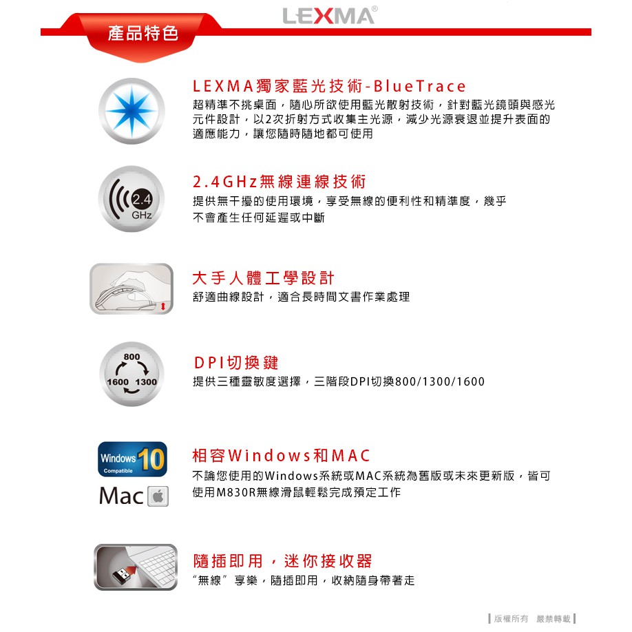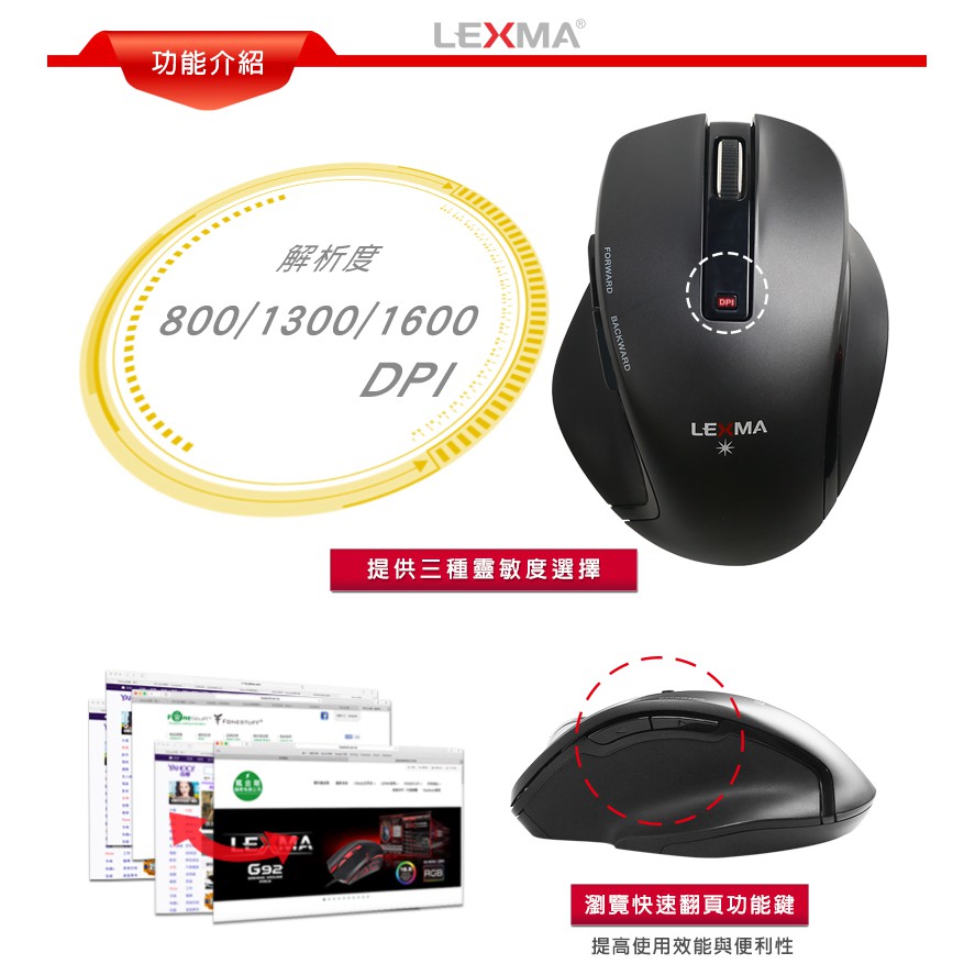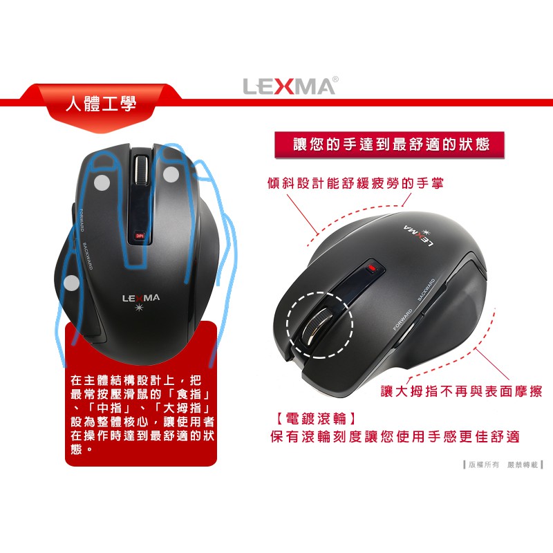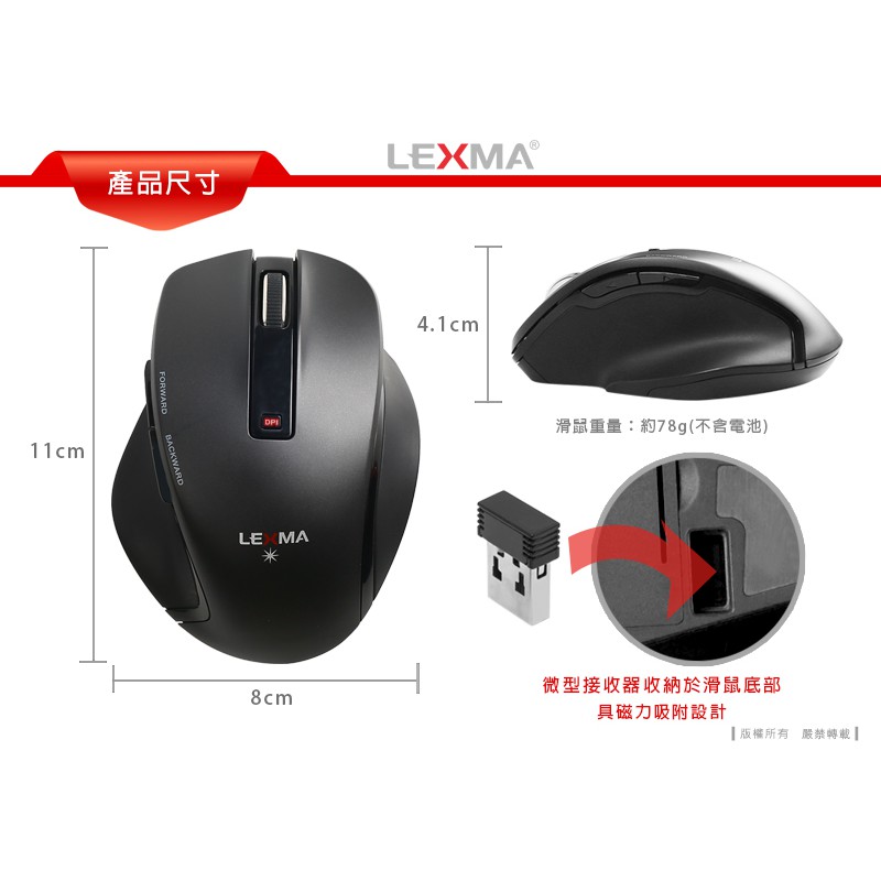 LEXMA M830R 2.4GHz無線藍光滑鼠 無線鼠標-尊爵黑