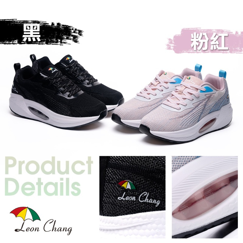 【Leon Chang 雨傘】女款-漸層高挑氣墊運動鞋-黑(LAL7826)
