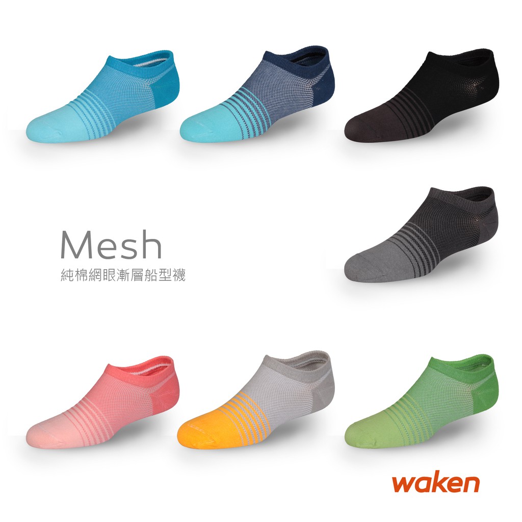 【waken】純棉網眼漸層船型襪 2雙組 男女款 短襪 / 學生襪 / 男襪 女襪子