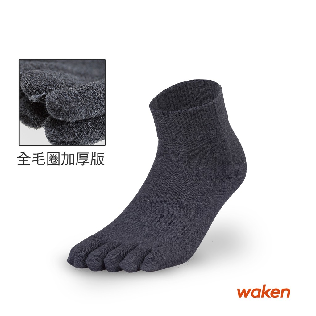 【waken】精梳棉全毛圈短筒五趾襪 1雙入 / 襪子 毛巾襪 運動襪 短襪 威肯
