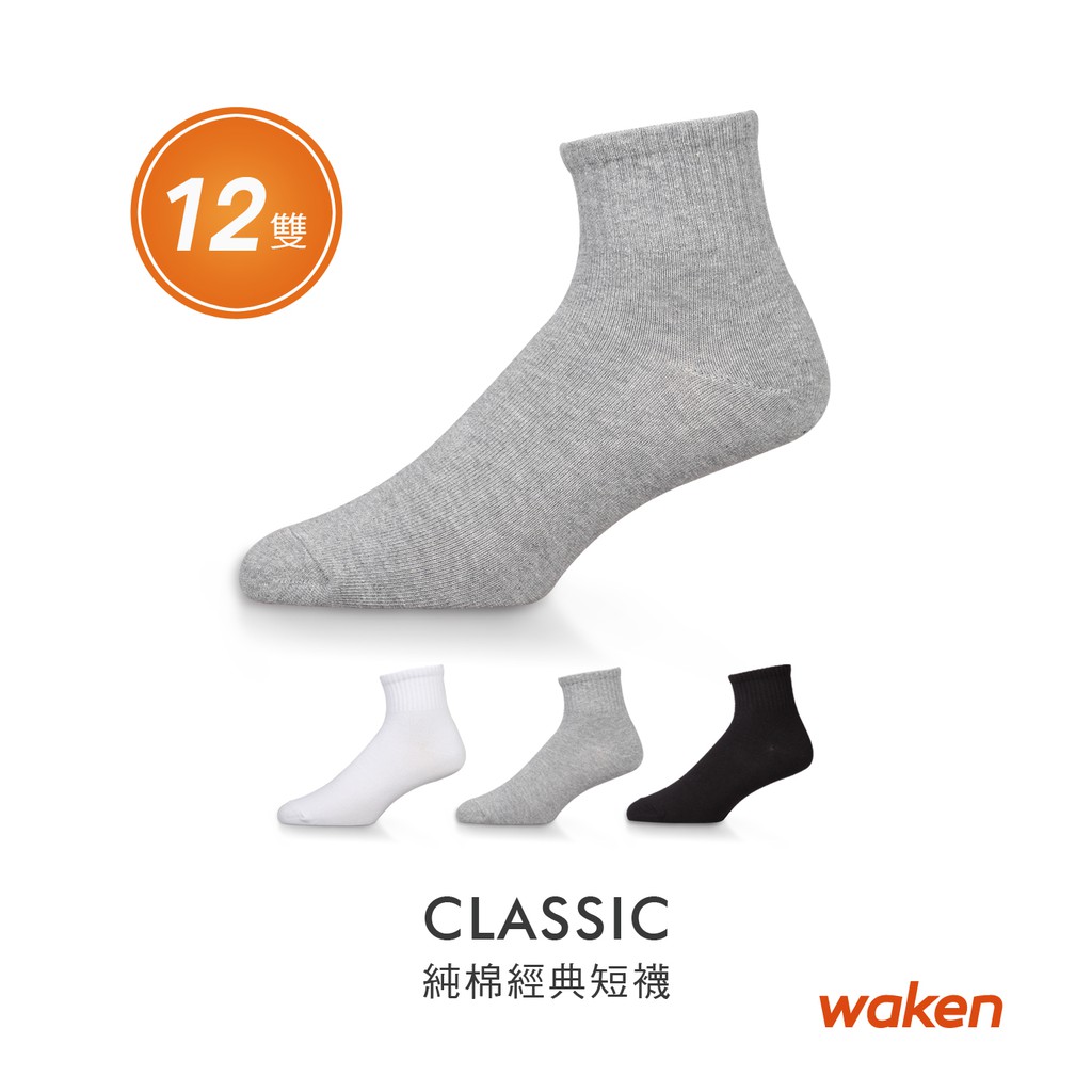 【waken】純棉經典學生短襪 12雙入 / 襪子 素色 學生襪 休閒襪 男襪 女襪 透氣吸汗 白襪 威肯棉襪