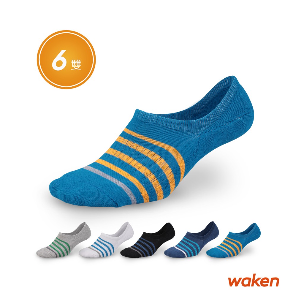 【waken】精梳棉超低隱形運動襪 6雙組 / 男襪 / 襪子 / 隱形襪 / 毛巾襪 / 船型襪