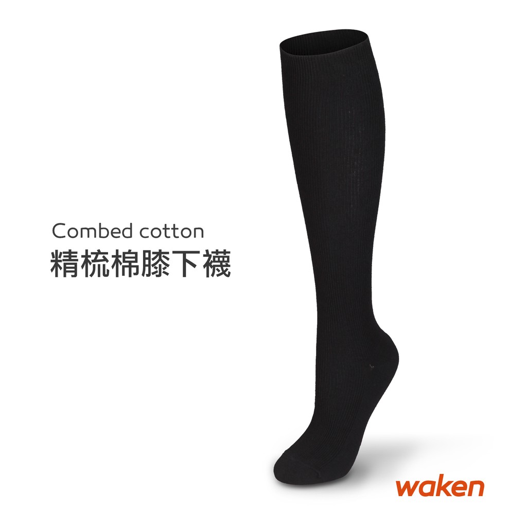 【waken】精梳棉萊卡純色膝下襪 1雙入 / 襪子 女襪 長襪 學生襪 黑襪 長筒襪 長統襪