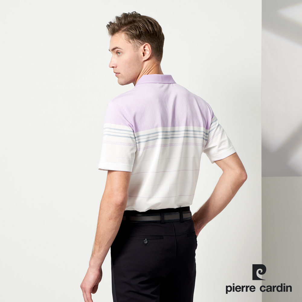 【pierre cardin 皮爾卡登】男款 TOP定位橫條短袖POLO衫-紫色 (5237293-25)