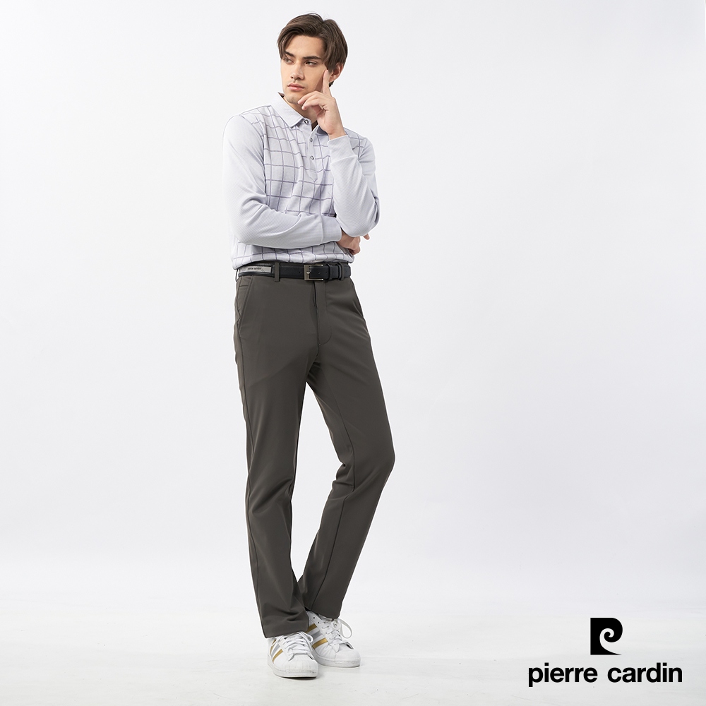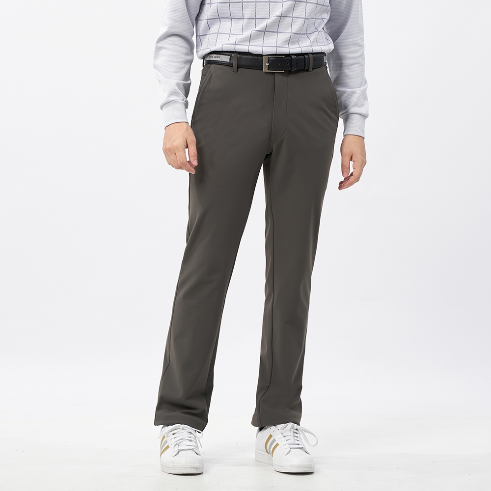 【pierre cardin皮爾卡登】男裝 微彈性內磨毛平口休閒長褲-深橄綠 (5235831-48)