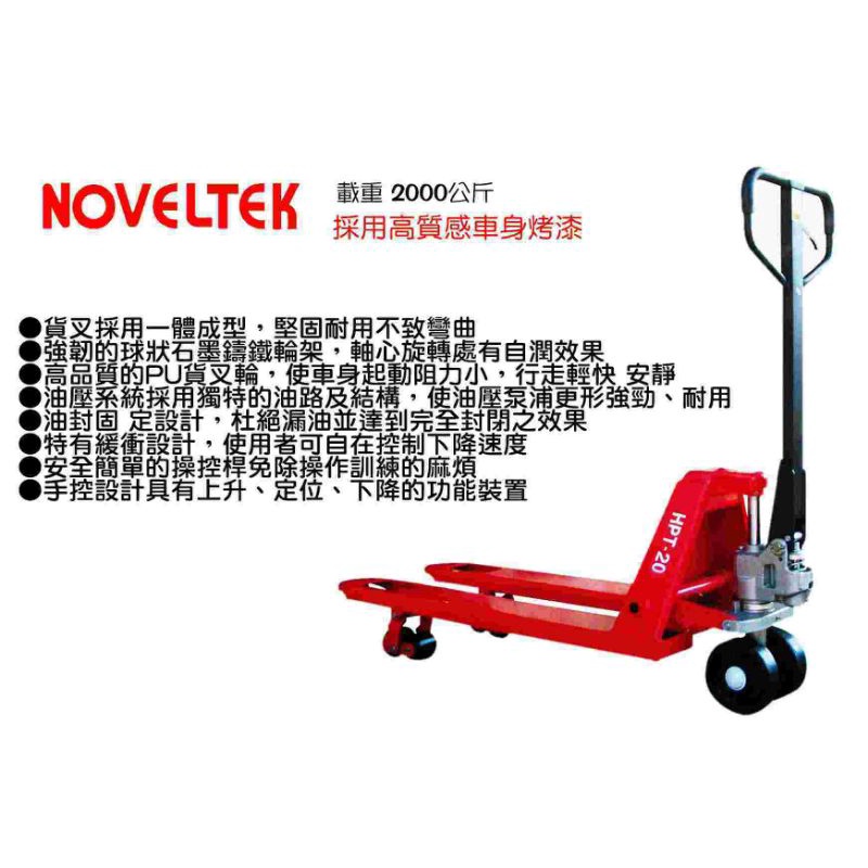 台灣製造75mm低床手動油壓拖板車/棧板車-HPT-20型,貨叉輪-單輪(載重:2000kg)