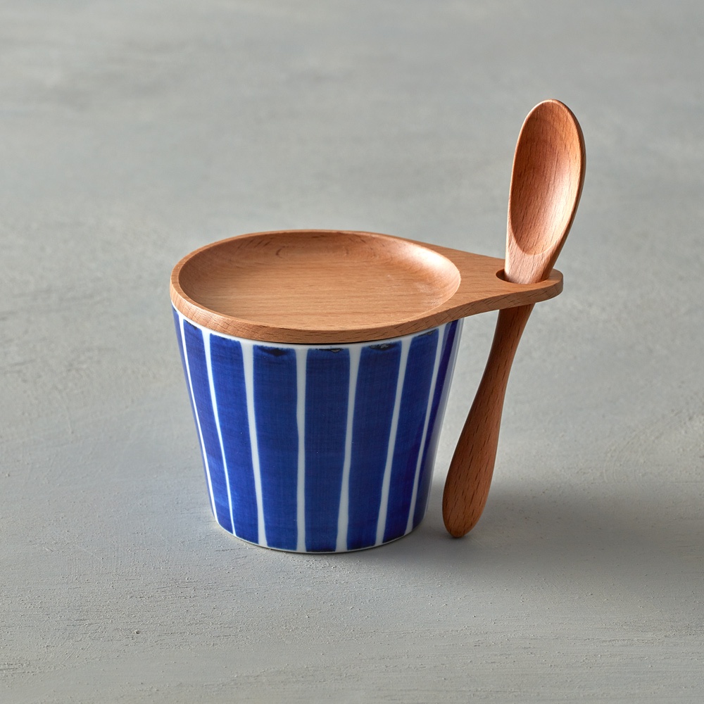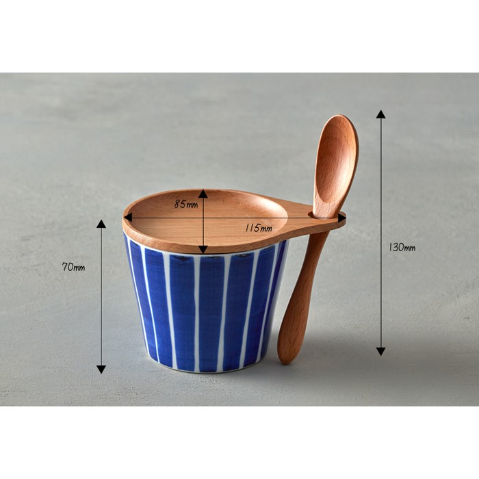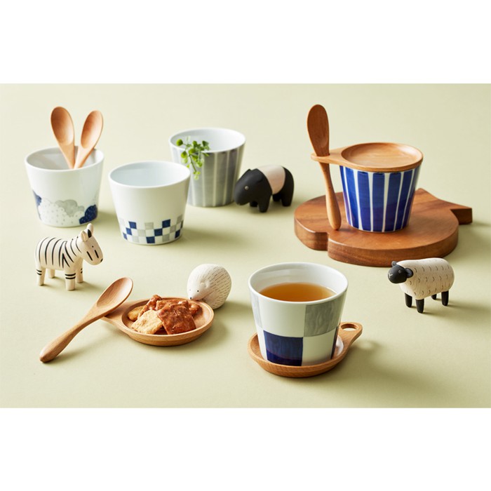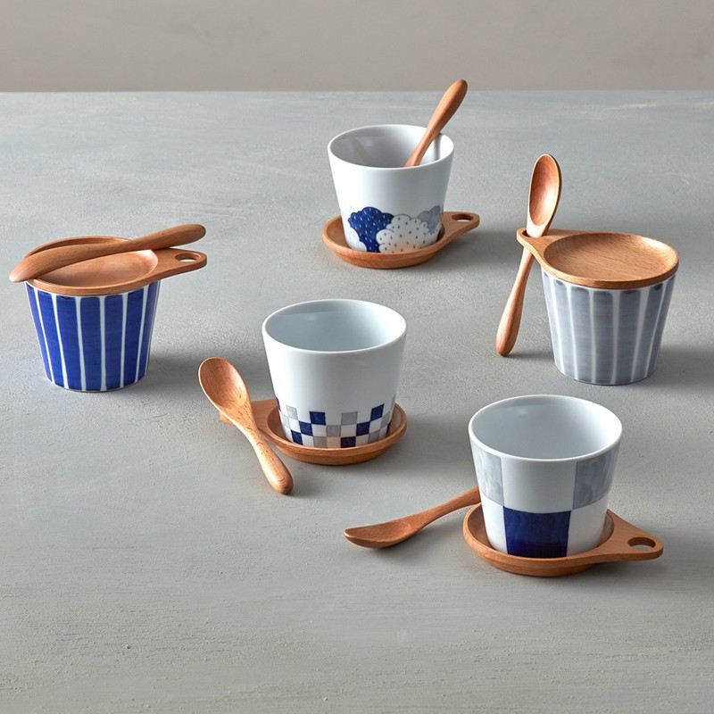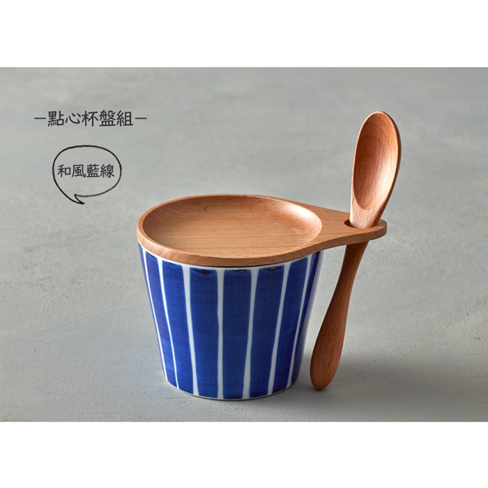 石丸波佐見燒 - 點心杯盤組 - 附匙 (3件式) - 和風藍線 -《日本進口現貨》