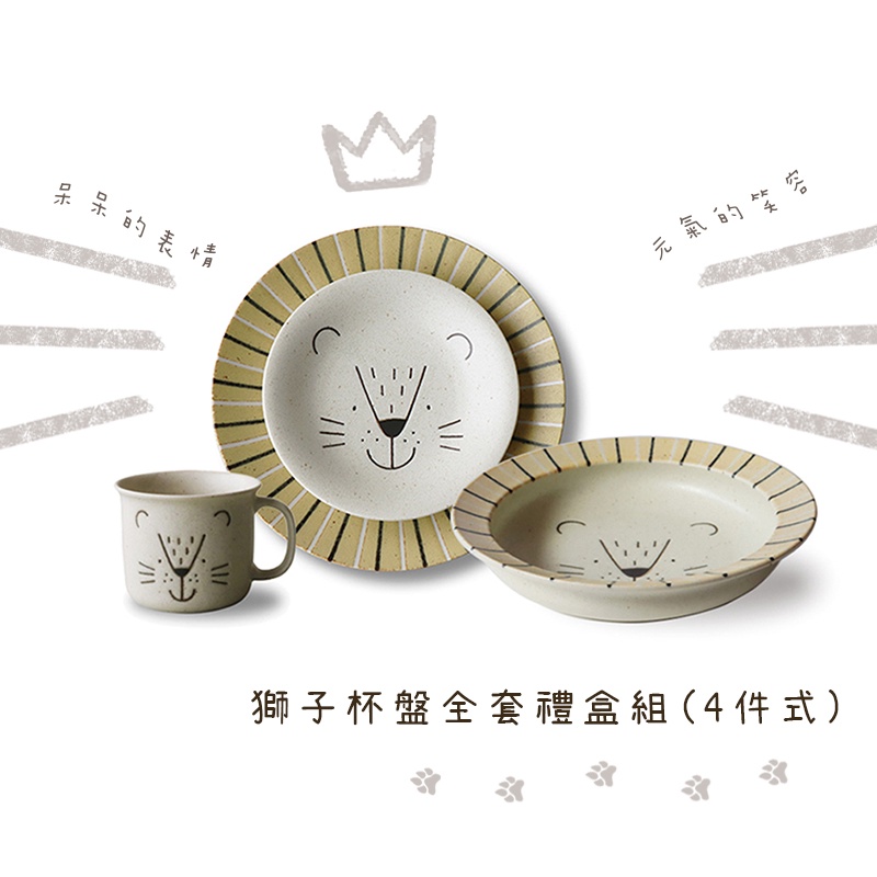 日本AWASAKA美濃燒 - 獅子杯盤全套禮盒組(4件式) -《原裝進口現貨》