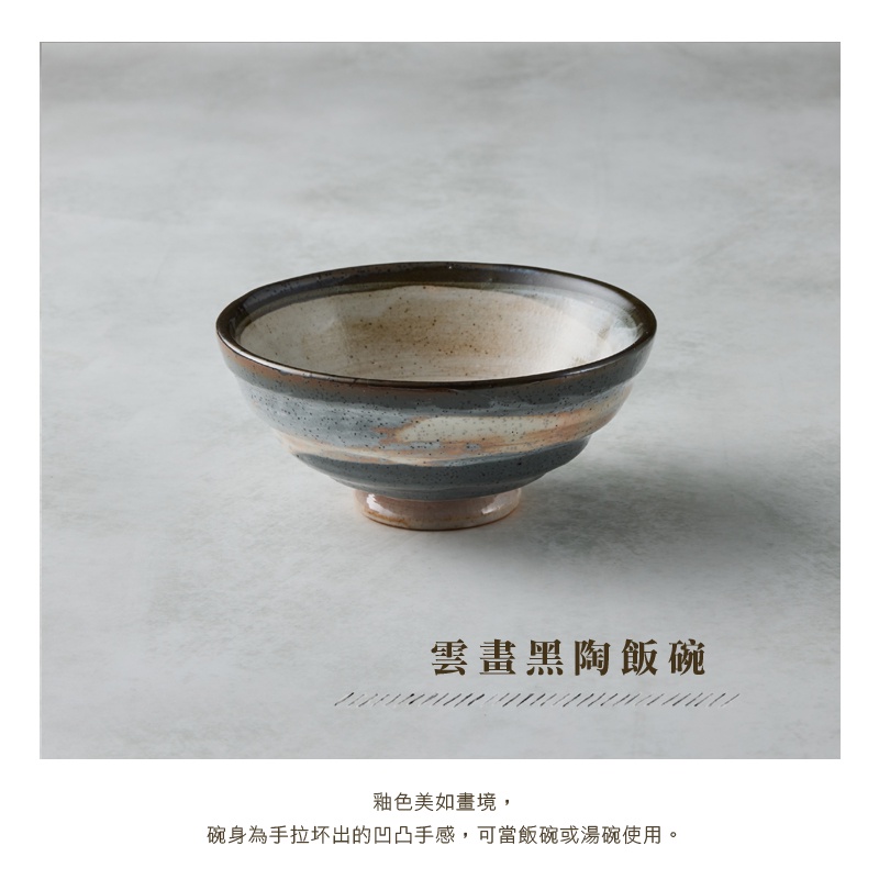 日本AWASAKA美濃燒 - 雲畫黑陶飯碗 (12.5cm) -《日本進口現貨》