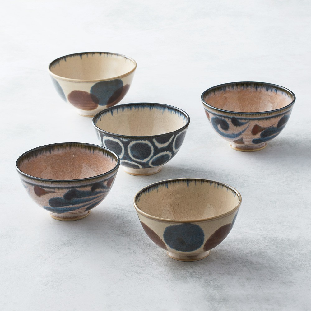 日本AWASAKA美濃燒-筆青釉繪飯碗組(5件式)-《日本原裝進口》