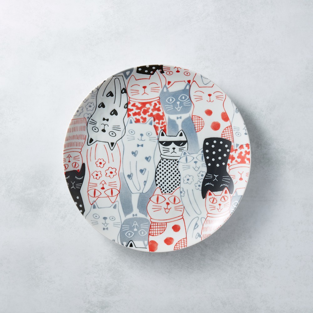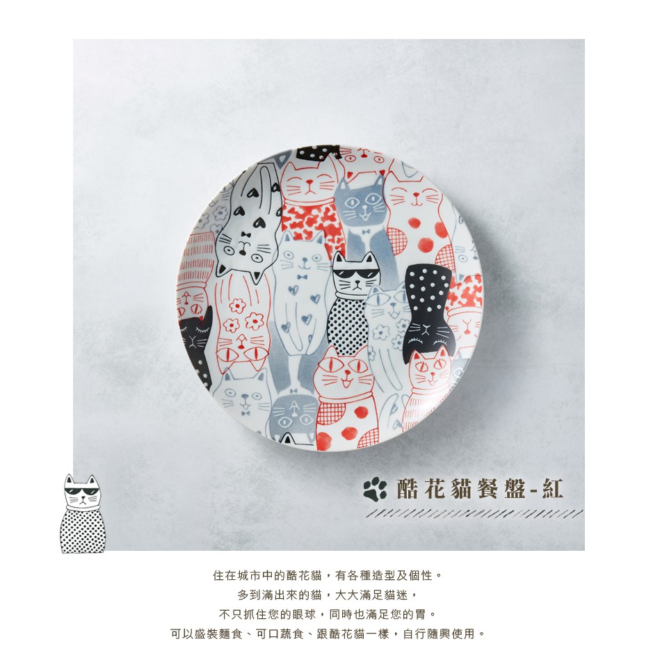 日本AWASAKA美濃燒-酷花貓餐盤 - 紅 -《日本原裝進口》