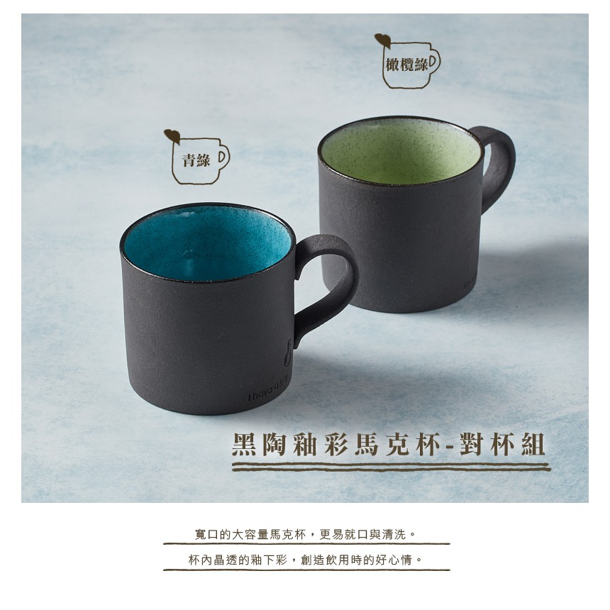 日本KOYO美濃燒 - 黑陶釉彩馬克杯 - 對杯組(2件式)