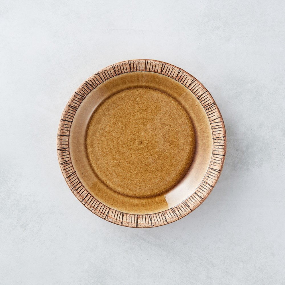 日本KOYO美濃燒 - 細雕紋小盤 - 赭石黃