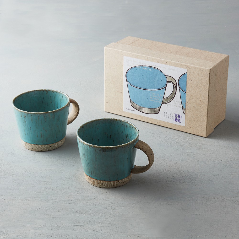 日本KOYO美濃燒 - 細刻紋馬克對杯禮盒組(2件式)