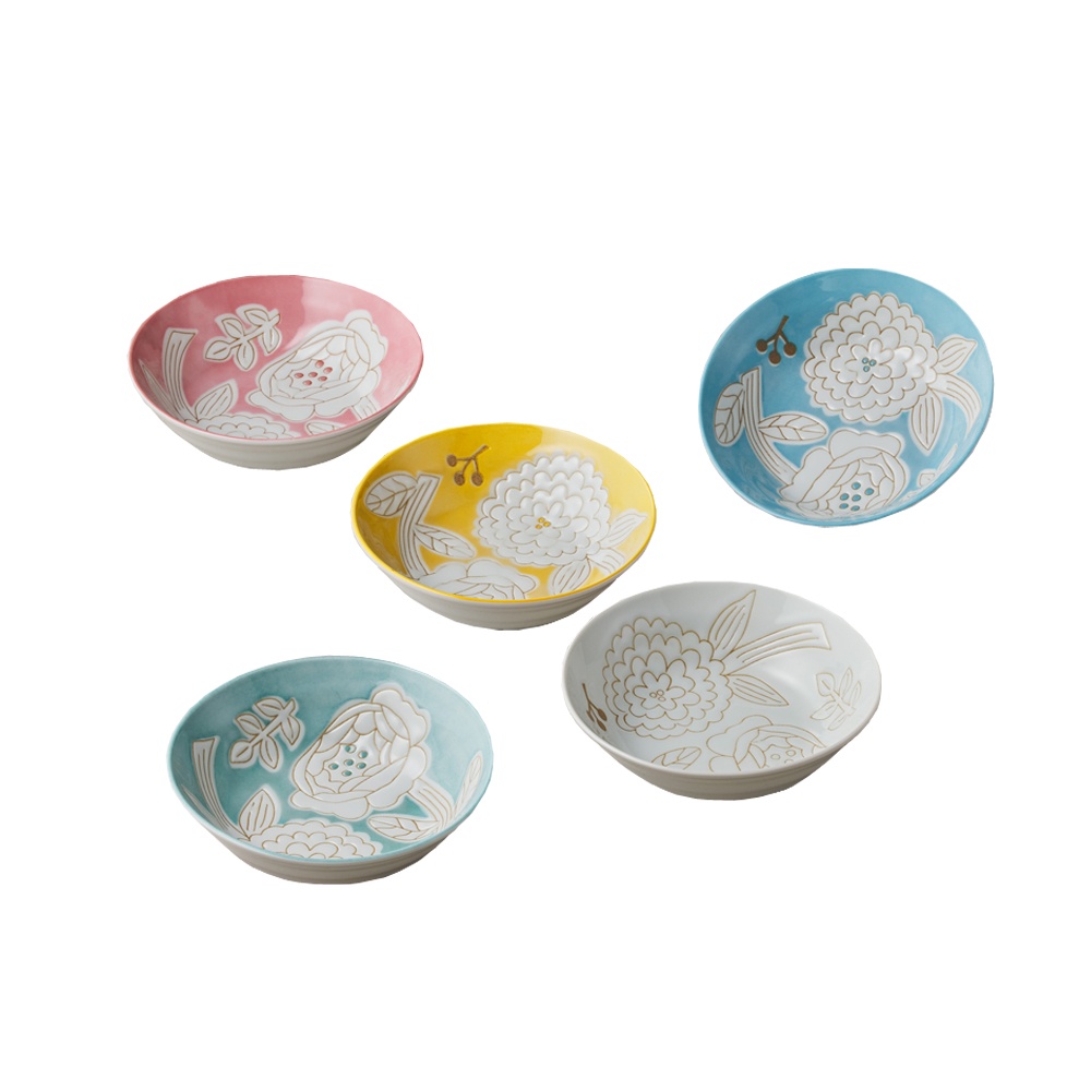 日本小倉美濃燒 - 粉染花朵碗禮盒組(5件式) - 13.3cm -《日本原裝進口》