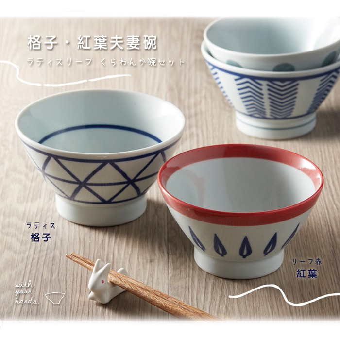 石丸波佐見燒│格子 ● 紅葉夫妻碗(2件組) -《日本進口現貨》
