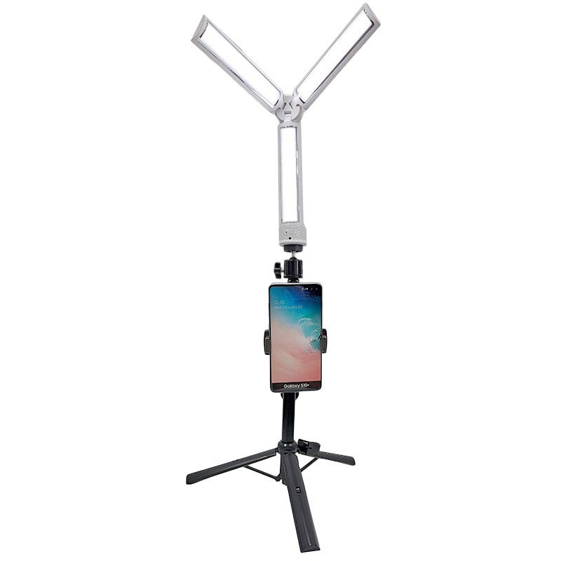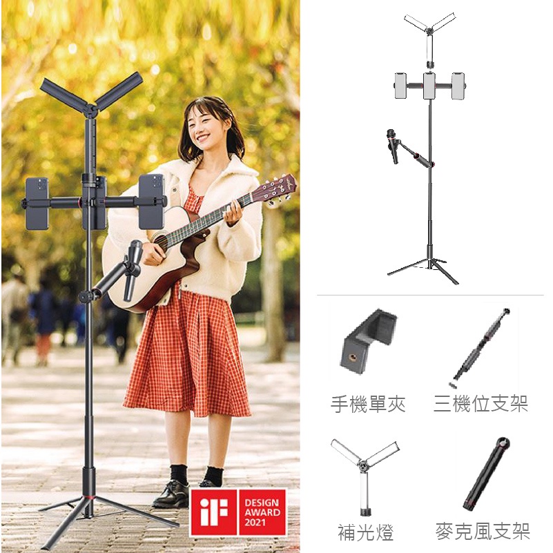 直播補光燈 折疊伸縮補光燈 三色調光 迷你便攜 美顏嫩膚柔光燈 補光燈 自拍燈 照明燈 三機位補光麥克風支架