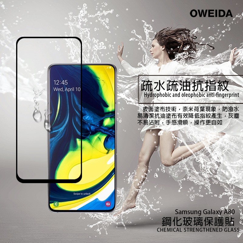 Oweida Samsung A20/A30/A50 A60 A70/A80 2.5D滿版鋼化玻璃貼